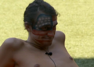 BB gave them a little bit of a holiday today. Noms usually happen the day after HOH, but with the holiday today I'd imagine they don't want to do any real production. The HGs have also been told they're going to get some sort of party/BBQ this evening, including a reprieve for the Have Notties. So a few of them spent a tremendous amount of time on patriotic face-painting this afternoon, and most of them are decked out in red, white and blue.