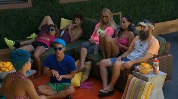 The Wednesday show filled in a few gaps, and basically laid out the storyline for the TVOVs. We never got any mention of the "all-girls alliance" as why Pao was nom'ed, but they had to fit that in to explain why Joey was the repl-nom. The TVOVs are shocked and confused that the first Team America member could be booted, but livefeeders know that's just the curse the of dud-twist. The show also continued to portray Devin as a total nut job, but didn't really get into Caleb's craziness. They did touch on it a bit in order to explain why Donny was the BS target #1, with the whole bit about Donny actually being a Navy Seal or something. Apparently if you pull up your socks, you must be ex-military. But we haven't seen any of Caleb's bunny-boiler Amber obsession on the show yet. At the rate he's going, he'll still be talking about it in 10 weeks though, so there's no rush.