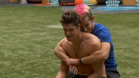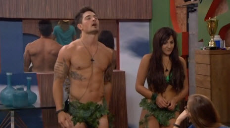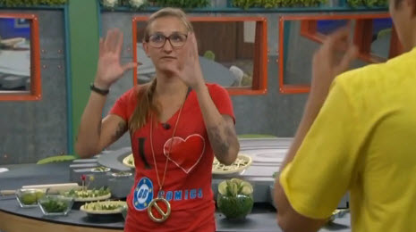 So really it was no surprise when Caleb/Victoria won BOB and dethroned Donny. They got some punishments to go along with their win. Two weeks on slop for both, 48 hours chained together in some poorly assembled Adam and Eve costumes, and a shaved head for Caleb. Caleb has whined immensely about all 3, especially the shaved head. For a soldier he's surprisingly against the buzz-cut; I'm surprised he hasn't claimed it will cause him PTSD. Or maybe he has. Nicole also named volunteers Hayden, Cody and Frankie as HNs--they get Pea Lime Pie as their supplement.