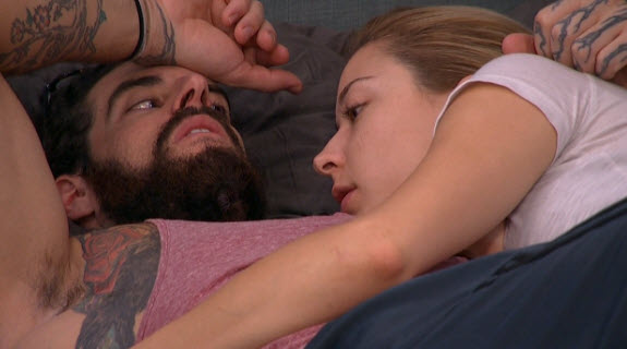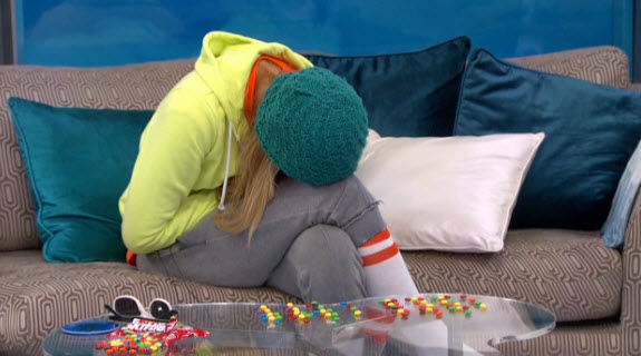 So John and Steve hit the block, with the plan being to send John out. But that got all foiled when Johnny Mac won POV. Now it's super-scheme time as everyone tries to figure out what's best for them. Vanessa sat down with bags of M&Ms and Skittles and mapped out different scenarios for next week based on HOH and POV wins. It seemed clear that she quickly decided that the worst person to lose was Liz, so Austin would have to be the re-nom.