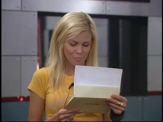 Daniele won HOH. It took forevvvvver for the feeds to come back, so we were deprived of most of the endurance comp. By the time we got something, everyone but Jessica, Daniele, Jen and Kail were out, and Jess dropped shortly afterwards. All cams were on Dani and Kail, so it was clear it was going to come down to them. Lots of trash talkin' from the guys, Jessica dropped for an unknown reason and Jen got DQ'ed on the swirlies....Kail, who was about to go, dropped shortly afterwards, with a promise from D. that even if she was nom'ed, she was safe.
